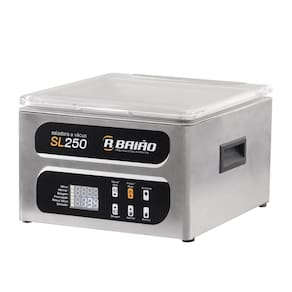 A Seladora a Vácuo de Câmara SL250 da R. Baião foi desenvolvida para oferecer praticidade, economia e sabor em cozinhas residenciais e comerciais. Compacta e eficiente, é ideal para quem busca preservar alimentos com mais qualidade, evitando o desperdício. O modelo conta com função de marinar com ciclo regulável, selagem a vácuo em sacos Nylon Poli lisos e também em potes herméticos. A estrutura em aço inox 304 garante durabilidade e facilidade na limpeza, com cuba arredondada, bomba de duplo pistão isenta de óleo e painel digital IP65 de fácil manuseio. Com ela, é possível selar alimentos com segurança, preservando sabor, textura e nutrientes. Acompanha mesa interna de regulagem e permite embalar produtos de até 25x30cm.