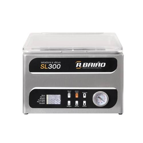 A Seladora a Vácuo SL300 da R. Baião é perfeita para quem busca praticidade e eficiência na conservação dos alimentos em casa ou em pequenos comércios. Com design compacto e moderno, ela realiza o vácuo em sacos nylon poli lisos e potes herméticos, além de contar com a função exclusiva de marinar, que intensifica o sabor dos alimentos em minutos. Sua estrutura em aço inox 304 e cuba com cantos arredondados facilitam a limpeza e asseguram durabilidade. O painel digital resistente à água, com botão "PARE", oferece total controle e segurança durante o uso. Evite desperdícios, prolongue a vida útil dos alimentos, preserve cor e sabor, e agregue mais valor aos seus produtos com essa tecnologia nacional.