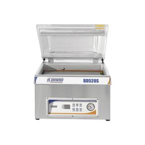 A Seladora a Vácuo de Câmara R. Baião BD520S é ideal para supermercados, açougues, padarias, casas de carnes, buffets e estabelecimentos que exigem qualidade e praticidade no processo de conservação de alimentos. Fabricada em aço inox 304, com tampa em acrílico de 20 mm e barras de selagem acionadas por cilindros com isolação em fibra de vidro, oferece durabilidade e segurança no uso contínuo. Sua cuba interna conta com cantos arredondados que facilitam a higienização e evitam acúmulo de resíduos. Com painel digital IP65 e contador de processos, a operação torna-se ainda mais eficiente. A bomba de vácuo R. Baião de 10m/h garante uma selagem rápida, segura e eficaz, com extração de até 99,8% do ar da embalagem, preservando sabor, cor, qualidade e aumentando a vida útil dos alimentos embalados.