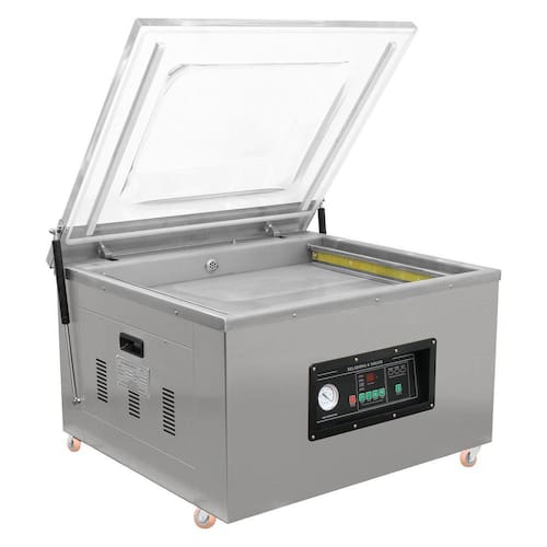 A máquina possui as vantagens de estrutura compacta tamanho pequeno peso leve baixo consumo de energia alta sensibilidade. Constituída em aço o que evita a oxidação atende a todos os requisitos de higiene e durabilidade tornando-a compatível com qualquer ambiente de trabalho. Possui tampa de acrílico o que possibilita melhor visualização do processo. Seu processo é feito de modo automático (apenas a colocação e retirada do produto da câmara é manual) esta máquina é composta de quatro partes principais a fuselagem o sistema de circuito o sistema pneumático e o sistema à vácuo. A temperatura da selagem e o vácuo exigido para o empacotamento dos produtos devem ser ajustados. A seladora a vácuo é uma máquina com fácil operação manutenção simples e ampla aplicação para uso de material de embalagem macio como filme composto poliéster/polietileno nylon/polietileno polipropileno/polietileno poliéster/folha de alumínio/polietileno nylon/folha de alumínio/polietileno. Ideal para embalar grãos alimentos frutas sementes remédios produtos químicos produtos eletrônicos instrumentos e medidores de precisão e sólidos metálicos. Os produtos após a embalagem a vácuo são protegidos impedidos de oxidação mofo traça podridão e umidade portanto a qualidade e o frescor são garantidos e prolongados para um maior período de armazenamento e o volume do pacote pode ser reduzido e melhor otimizado para transporte e armazenagem. A Nagano possui modelos diferentes de seladoras conforme número de barras tamanho da área de selagem e potência. Certifique-se de comprar a que melhor se adequar ao seu objetivo. APLICAÇÃO DA MÁQUINA Açougues Carnes frescas carnes processadas aves linguiças alimentos temperados espetos; Peixarias Frutos do mar e peixes de diversas especiarias; Hortifrútis Legumes Verduras Vegetais e Frutas; Casas de empório e produtos naturais Folhas de Chá Ervas produtos em pó; Padarias Doces pães mistura de bolos calda líquida e fatiados congelados salgados embutidos e laticínios diversos; Lanchonetes Batatas legumes queijos e outros tipos de frios. Porções pré-preparadas; Mercados Frutas alimentos frescos grãos massas etc. Frequência 60 HzPotência da Bomba do Motor 2.2 KwPotência de Selagem 1.0 KwPressurização 1.33 KpaTamanho da Câmara de Selagem (C x L x A) 820 x 620 x 220 mmTamanho da Selagem (C x A) 600 x 10 mmBarra de Selagem 02Vácuo da Bomba 40 m³/hDimensões (C x L x A) 920 x 720 x 1005 mm