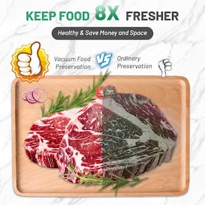 Máquina seladora a vácuo, seladora a vácuo para armazenamento de alimentos, máquina seladora de alimentos 6 em 1 para modos seco/úmido - Estenda o frescor dos alimentos: a máquina seladora MAXDONE a vácuo usa tecnologia avançada de vedação a vácuo para remover o ar e selar o frescor, mantendo seus alimentos frescos por até 8 vezes mais tempo. - Modo duplo molhado/seco: a máquina seladora a vácuo é projetada com dois modos opcionais: seco e molhado, que pode fornecer o melhor efeito de preservação para seus alimentos de acordo com seus diferentes tipos de alimentos. - Opção fácil 6 em 1: esta seladora a vácuo de alimentos tem 6 botões: aspirar, selar, arroz, molhar, secar e parar. É adequado para embalar vários alimentos, como carne, frutas, legumes, pão, etc. - Design compacto e fácil de limpar: tamanho compacto da máquina seladora de alimentos: 37 x 13 x 5,8 cm, peso: 800 g. Pode caber facilmente em armários e gavetas. O design separado e os botões da tela sensível ao toque permitem que você a limpe facilmente. - Kit de iniciante amigável: o pacote inclui 1 máquina seladora a vácuo, 10 sacos seladores a vácuo, 1 x cabo de alimentação e 1 x manual do usuário.