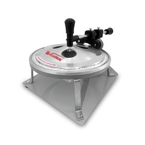 O processo é simples: acople a marmita no aro inferior, posicione a tampa desejada, abaixe a parte superior com roldanas e gire até que a borda da marmita esteja completamente selada.