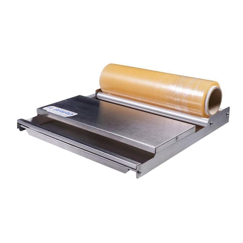 Corta o filme e envolve o produto ou bandeja.