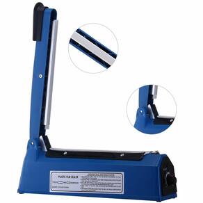 Voltagem: 110v Cor: azul Material: plástico e metal Potência: 150w Espessura máxima de selagem: 0,3mm Largura máxima de selagem: 2mm Comprimento máxima de selagem: 100mm Tempo de aquecimento: 0,2 - 1,5 s Comprimento da selagem: 10cm