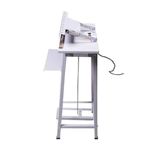 Especificações: . Uso intercalado modelo com controle . Potência 210 w bivolt . Liga ao acionar o pedal . Pintura eletrostática epóxi, com tratamento de superfície anticorrosivo, cor cinza . Mesa de apoio regulável, conforme o produto . Embalagem: polietileno, polipropileno, nylon, tnt, aluminizados entre outros;