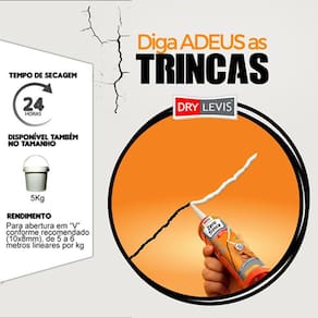 a massa de reparação zero trinca da drylevis é um selante acrílico antitrincas e fissuras. Indicado pela excelente resistência à intempéries e raios solares. Sua principal função é corrigir as trincas que surgem nos sistemas construtivos, ocasionadas pela movimentação natural das estruturas. Pode ser aplicado em superfícies internas ou externas. Aceita pinturas isentas de solvente, à base de látex ou de emulsões acrílicas, produto pronto pra uso. Indicação