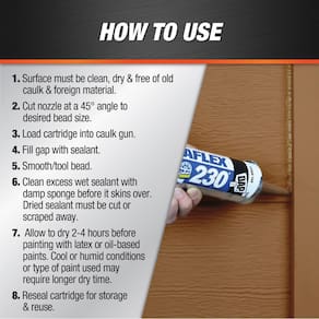 - Oferece uma vedação permanentemente flexível e à prova de rachaduras, ideal para vedar água e vazamentos de ar para melhorar a eficiência energética de uma casa. Também veda insetos de entrar através de pequenas lacunas e rachaduras. Selante curado. Ideal para uma ampla variedade de aplicações, como vedação em torno de janelas, portas, tapume, acabamento, moldagem e rodapés. Excede a especificação federal TT-S-00230C, Tipo II, Classe A e ASTM C 99. 20, Classe 20 5.