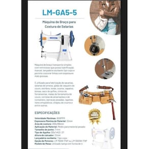 Máquina Costura Industrial Selaria com Retrocesso Máquina de braço transporte simples com retrocesso que possui lubrificação manual, lançadeira oscilante tipo copo e permite costurar linhas com espessura mais grossas.