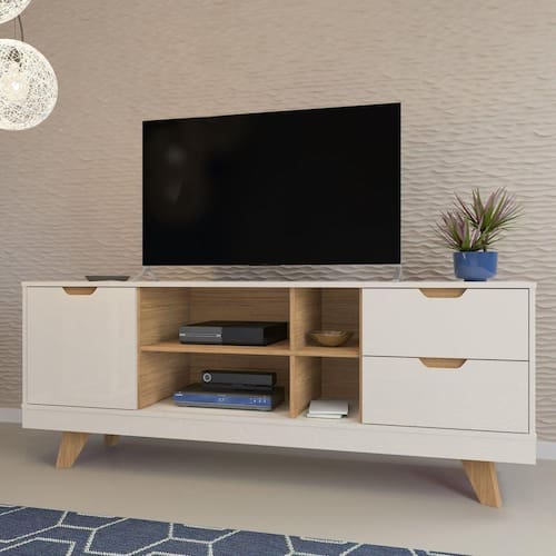 Rack Sala de Estar 1 Porta 2 Gavetas 4 Nichos Michigan Artely Off White/Carvalho - Bege
