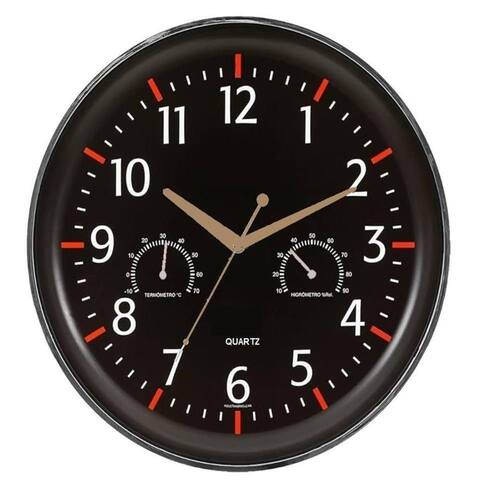Relogio Parede Termometro Higrometro Medidor Temperatura Decorativo Escritorio Vintage Preto Luxo