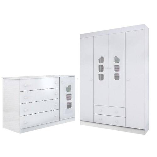Guarda Roupa 4 Portas + Cômoda 4 Gavetas Livia Branco - Phoenix Baby -