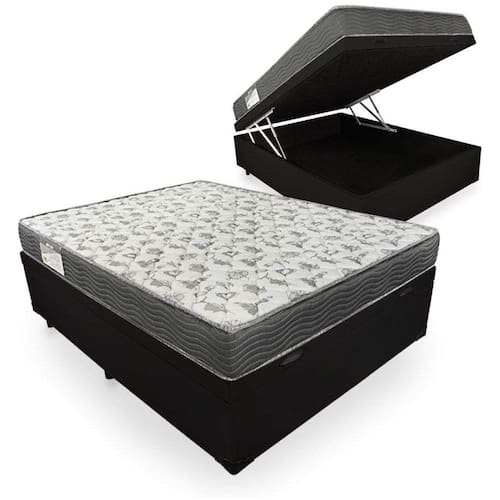 Cama Box Baú Casal Preto Colchão ISO 100 D33 - Ortobom
