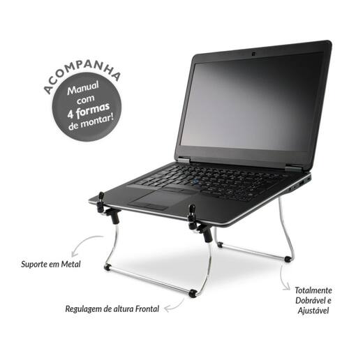 Suporte Notebook Reliza Aço 5 Regulagens Até 20Kg - Cor: Cromo