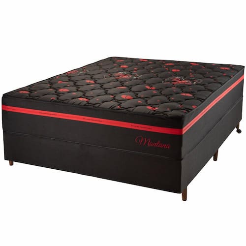 Conjunto Box e Colchão casal Hellen Montana com molas ensacadas 1,38 - Preto/Vermelho