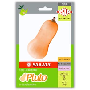 Características * Variedade: Abóbora Híbrida Pluto * Nome científico: Cucurbita moschata * Cor da Casca: Alaranjada clara * Cor da Polpa: Laranja intensa * Formato: Alongado * Ciclo Anual: Anual * Ciclo de Verão: 90 - 100 dias * Exposição solar: Mínimo 3 horas de sol por dia * Germinação: 4 a 8 dias * Transplante: Após o desbaste das mudas * Colheita: Aproximadamente 90 a 100 dias após o plantio * Sementes livres de transgênicos e agrotóxicos * 100% natural e de alto desempenho * Quantidade de sementes por grama: 4 a 6 * Registro: RS-05567/2019