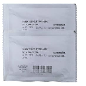 Características * Apresentação da Semente: Peletizada * Cor das Folhas: Verde-clara * Tipo das Folhas: Larga com alta crespicidade. Informações/Dicas/Usos * Cada envelope aluminizado contém 100 pelets de sementes, o que traz facilidade no escalonamento do cultivo. * As bandejas de mudas podem ser formadas com uma ou mais variedades. * Desta forma também fica mais fácil planejar e dimensionar os semeios.* Conforme a demanda na produção, mantendo a qualidade a cada novo semeio. * Germinação (dias): 5 - 10 dias. * Tipo da embalagem: Envelope Pratipelet * Quantidade de Sementes: 200 pelets - 2 Envelopes aluminizado conténdo 100 pelets de sementes cada.
