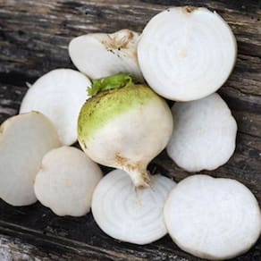 Descrição * Nome Científico: Beta vulgaris L. * Beterraba de coloração branca como a neve e arredondada.* Possui um alto índice de açúcar, com o diâmetro de 5-10 cm. * Suas folhas são verdes claras e eretas.