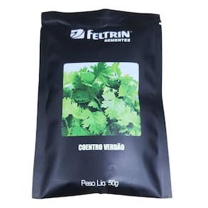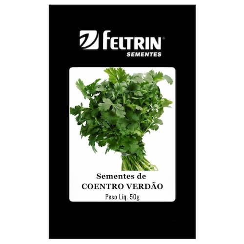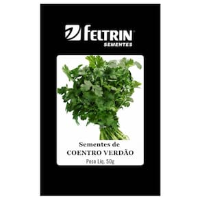 Sementes de Coentro Verdão (50g) FELTRIN Descrição * Coentro Verdão é um ingrediente que esta presente em muitos lares brasileiros, utilizado no preparo de diversos pratos. * Coentro é aromático que atinge de 30-40cm de altura, folhas lisas e vigorosas de coloração verde intenso. * Pode ser utilizado em diversos tipos de molho e saladas, tornando os mesmos mais saborosos.