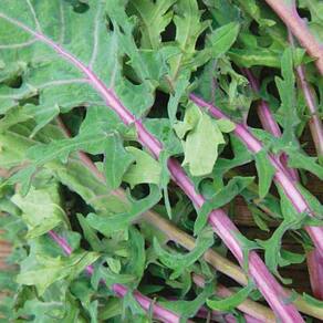 * Produz folhas crocantes, serrilhadas e esverdeadas com nervuras roxas de sabor levemente picante.