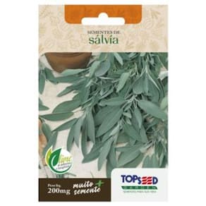 SEMENTES DE SALVIA 200mg Nome cientifico: Salvia officinalis. Como plantarRevolva o solo no mínimo 20 cm de profundidade até que fique solto, sem a presença de torrões. Para melhorar o solo, adicione esterco e/ou húmus na proporção de 10%. Misture adubo balanceado NPK considerando 300g para cada 10m2 de canteiro. Para plantio em vasos, use substrato e adicione 5g de adubo por litro de vaso. Semeie conforme a tabela ao lado. Após o plantio, manter o solo e/ou substrato úmido, sem encharcar, para obter melhores resultados.Germinaçao4 a 21 diasSementes por grama120 a 140