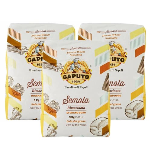 Pack com 3 Sêmolas de grano duro Rimacinata Caputo 1 Kg A cor âmbar amarela, a granulometria calibrada e elasticidade do glúten, a tornam ideal para fabricação de massas artesanais, massas frescas, ajuda na padronização e na crocância de pães, pizzas etc. Pode ser utilizada para polvilhar no balcão de pizza. O produto não contém aditivos químicos e seu processo de fabricação consegue reproduzir a mesma qualidade em todos os produtos independentemente da sazonalidade da colheita do trigo. O Moinho Caputo foi fundado em 1924, por Carmino Caputo. Marca líder na Itália e nos Estados Unidos, segue até os dias de hoje a tradição napolitana na fabricação de farinhas de trigo. Tipo: Grano Duro Contém glúten. Sugestão de consumo: produção de massas, pães, pizza, etc. Origem: Nápoles - Itália Peso: 1 Kg