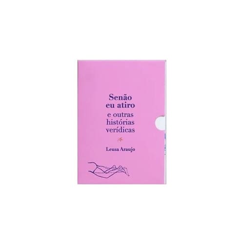 Senão eu atiro e outras histórias verídicas, de Leusa Araujo, traz seis contos marcados por precisão descritiva, personagens de comportamentos perturbadores e desfechos imprevistos em histórias construídas a partir da experiência pessoal da autora e de casos judiciais. Leusa Araujo constrói seus contos com linguagem coloquial e uma dicção seca, usando como técnica principal de narração os diálogos desconcertantes e os fluxos de pensamento que mergulham na interioridade dos personagens, o que favorece o sentimento de solidão e aridez presente dos textos. A matéria escolhida para as narrativas tampouco permite alívio: um suicídio malsucedido (“A gorda que caiu do céu”); paralisia do sono (“Experiências extracorpóreas”), a virulência letal de um pintor (“Senão eu atiro”); o desamparo e a hipocrisia das relações (“A mendiga do Macuco”); as tensões sociais no retrato de uma paixão adolescente (“Daiane”). O conto que fecha o volume (“Iracema”) faz um triste, porém belo, contraponto: um filho que está prestes a perder a mãe revira o baú da família e reencontra relíquias há muito esquecidas, como álbuns de fotografia e livros. O projeto gráfico de Silvia Nastari explora o universo temático das histórias e o processo de trabalho de Leusa Araujo. O miolo tem costura aparente, e uma luva impressa em serigrafia sobre papel rosa acondiciona o livro, aludindo aos procedimentos de pesquisa e arquivamento. O amarelado do papel pólen e a tipografia clássica juntam-se ao caráter efêmero dos materiais em que o projeto se inspira, como o cor-de-rosa do papel manilha, os recortes de jornais da época e os itens de arquivamento e colecionismo. As imagens – retiradas de enciclopédias e manuais antigos – traduzem o teor de fragilidade e inacabamento dos objetos de arquivo, tanto pelo traço quanto pela impressão em carimbo. As ilustrações das sobrecapas foram impressas manualmente nas cores azul, preto e roxo. Assim, cada exemplar do livro é único, pois a disposição dos carimbos nas sobrecapas não se repete em nenhum dos volumes. Marca: QUELONIO EDITORA