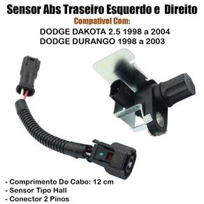 Sensor abs traseiro direito e esquerdo Aplicação: Características: - ótima qualidade e durabilidade. Especificações: - traseiro - direito e esquerdo - comprimento: 12 cm - conector: 2 pinos - tipo: hall Códigos: 5014787aa 56028187ad 5014787ab 5016133aa 56028187ab 56028187ac 56028229aa 120096 gs2099 73349 Dúvidas frequentes Qual horário de atendimento O horário de atendimento é das 08:00 às 17:30 hrs. Ainda tem dúvidas Utilize o campo de perguntas em caso de dúvidas e somente clique em comprar após a plena certeza em honrar a compra e concordar com as condições descritas acima. Importante Não nos responsabilizamos por instalação mal realizada; a instalação deve ser feita por um especializado. De um novo visual para o seu carro, aqui você encontra os melhores produtos com os melhores preços Imagem meramente ilustrativa. Marca: Não Informado