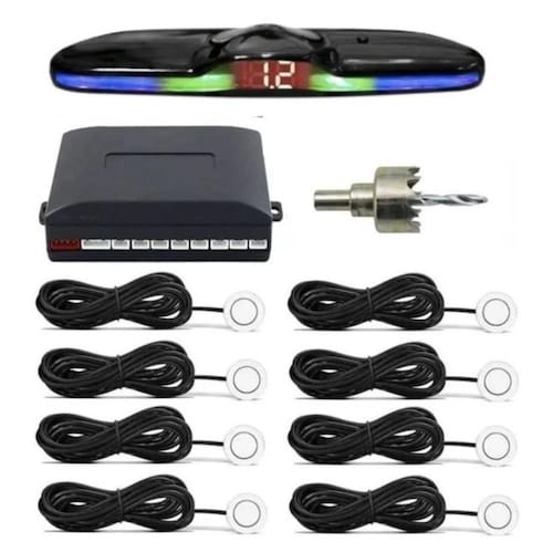 Sensor de estacionamento dianteiro e traseiro - 8 pontos na cor branca Características - display nova geração em led color e bip com liga e desliga. - cápsulas 18mm dianteiras com plug rápido e extensão extra. - cápsulas 18mm traseira com plug rápido e extensão. - central única digital. - 1 ano. - sistema de sinal universal dianteiro o sistema do sensor dianteiro pode ser ligado em qualquer sinal positivo para ativar o sensor . Conteúdo da caixa - 01 central eletrônica - 08 sensores - 01 broca tipo serra copo - 01 display digital - 02 fitas dupla face - 01 cabo de alimentação 12v - 01 manual de instalação Produtos enviados com . -verifique a compatibilidade do produto com seus equipamentos para que não haja problemas na hora do uso -para produtos que necessitam instalação, antes da mesma, deve ser feito o teste em bancada para que não ocorra a perda da . -para produtos que necessitam instalação, a mesma deve ser feita por um profissional capacitado, não nos responsabilizamos por uso indevido ou instalação incorreta. Politica de - troca / devolução A devolução por instalação ou outros motivos Poderá ser feita em até 7 dias corridos após o recebimento do produto, desde que com a embalagem , junto com todos os acessórios que o acompanham, manual e embalagem deverão estar preservados, sem fitas coladas, etiquetas ou algo que a descaracterize. O produto não poderá ter sido instalado, e sim somente testado em bancada, esse é um procedimento comum feito por instaladores profissionais antes de fixar o produto no veículo, e obrigatoriamente todos os produtos que exigem instalação devem ser instalados por profissionais devidamente habilitados. Devolução ou troca por defeito de fabricação Produtos com defeito somente serão trocados se cumpridas as mesmas condições de devolução, de não instalação, dentro dos 7 dias corridos após o recebimento, sem marcas de uso, do contrário serão enviados à assistência técnica do fabricante para conserto e devolução dentro dos prazos que rege a lei do consumidor vigente cdc . A do fabricante Alguns fabricantes dispõem de direta ao consumidor, e nesse caso a troca por defeito, ou a de assistência técnica só poderá ser feita diretamente nos postos autorizado, não sendo feita através do revendedor. Mesmo estando dentro do prazo de 7 dias corridos do recebimento, produtos como drivers e super tweeters, possuem somente para defeitos de fabricação, não são cobertos queima ou de reparo, seja ele de qualquer natureza que não a de fabricação. Não serão aceitos devoluções de produtos avariados, queimados, riscados, amassados, por instalação, manuseio, uso ou transporte incorretos, fora da embalagem ou com a mesma que sofreu danos.