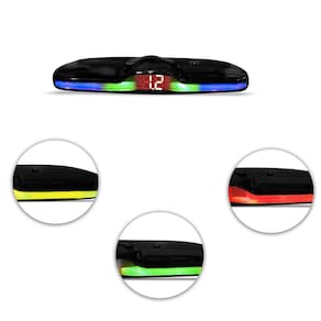 A distancia será mostrada no display digital, com indicador de três cores e três tipos de som do alarme, sendo acionado pela proximidade entre o veículo e o objeto que estiver atrás do mesmo. Quanto mais próximo o veículo estiver do objeto, mais intenso será o som emitido e quanto mais longe, menos será sua intensidade. O mesmo pode ser desativado pelo sistema ON/OFF. O motorista poderá calcular a distancia e evitar acidentes.