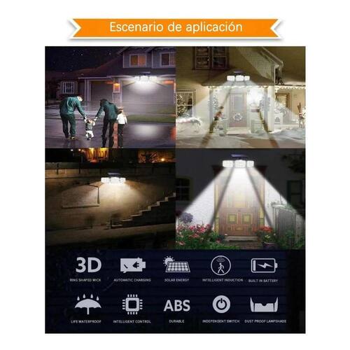 Lâmpada de parede solar Sensor de luz ao ar livre 138 Led 3 Modos Luzes com sensor de movimento sem fio --- instalação fácil, sem cabos ou adaptadores irritantes; Apenas usando os parafusos incluídos para fixar em qualquer parede externa construída de todos os tipos de materiais, incluindo metal, madeira ou plástico IP65 impermeável e resistência ao calor --- design à prova d'água garante que a luz solar seja ao ar livre, mesmo em mau tempo; Proteger eficazmente o corpo da lâmpada e prolongar a vida útil; Luz noturna de segurança ao ar livre, adequada para parede, pátio, jardim, corredor, gramado, caminho, pia, etc. Ele é projetado especificamente para suportar condições climáticas extremas. luzes solares ao ar livre, luz do sensor de movimento ao ar livre com 3mo opcional, impermeável, luz de segurança alimentada por. adequado para ambientes externos, como corredores, portões de jardim, telhados, paredes de terraço, moradias, vitrines, lojas, casas, etc. Esta luz solar com um design único de grande angular fornece um maior ângulo de luz. O painel solar pode ser virado para o sol para alcançar a máxima absorção solar. Especificação: Material: Polissilício + ABS Plástico + Preto Cor Componentes eletrônicos Tamanho: Painel Solar: 145x85mm/5.59x3.39inch 5.5V 1.8W Luz de Jardim: 90x78mm/3.86x2.76inch Bateria: 3. 7v 2400mA 360 Grau Ajuste Rotativo Completo --- Esta luz solar tem 3 módulos de iluminação ajustáveis e 1 painel solar independentemente rotativo, Você pode ajustá-lo e usá-lo de acordo com as necessidades de instalação e necessidades de iluminação; A direção da iluminação é ajustável com as três cabeças de luz flexíveis, poupe o seu trabalho para instalar duas luzes extras; Nenhuma eletricidade necessária, produto ecologicamente correto. A lâmpada solar adota um design único de grande angular. A lâmpada solar tem 3 módulos de luz, um total de 138 lâmpadas LED, cada lâmpada tem uma potência de 2w, e a maior distância de emissão de luz pode chegar a 8M. O painel solar pode ser girado 180 para cima e para baixo e 160 para a esquerda e para a direita. Os dois módulos de luz à esquerda e à direita podem girar para cima e para baixo 90 e 120, o que aumenta muito a faixa de iluminação. A faixa de iluminação é de cerca de 40 metros quadrados. A distância de detecção do produto é de 3-5M. Melhoramos a qualidade da bateria. Built-in 2400mAh bateria de lítio recarregável para garantir a carga total em condições de pouca luz. O painel solar recém-atualizado suporta carregamento rápido, que pode ser totalmente carregado em apenas 4-6 horas; pode ser por 8-10 horas à noite e 6 horas em luz brilhante; e a lâmpada LED de alta qualidade funciona por mais de 20000 horas. Luzes do sensor de movimento sem fio --- instalação fácil, sem cabos ou adaptadores irritantes; Apenas usando os parafusos incluídos para fixar em qualquer parede externa construída de todos os tipos de materiais, incluindo metal, madeira ou plástico IP65 impermeável e resistência ao calor --- design à prova d'água garante que a luz solar seja ao ar livre, mesmo em mau tempo; Proteger eficazmente o corpo da lâmpada e prolongar a vida útil; Luz noturna de segurança ao ar livre, adequada para parede, pátio, jardim, corredor, gramado, caminho, pia, etc. Ele é projetado especificamente para suportar condições climáticas extremas. Luzes solares ao ar livre, luz do sensor de movimento ao ar livre com 3MO opcional, à prova d'água, luz de segurança alimentada. Adequado para ambientes externos, como corredores, portas, jardim, telhados, paredes de terraço, moradias, vitrines, lojas, casas, etc. Esta luz solar com um design único de grande angular fornece um maior ângulo de luz. O painel solar pode ser virado para o sol para alcançar a máxima absorção solar.