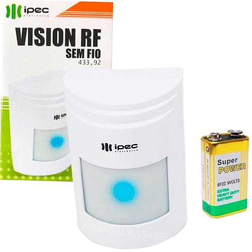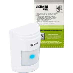 O sensor de movimento infravermelho passivo sem fio Vision RF foi desenvolvido com avançada tecnologia.Especificações Técnicas:Certificado Anatel 20692-22-12790-Sensor passivo sem fio, para uso interno-Bateria 9 volts alcalina-Consumo em stand-by: menos que 10 uA-Consumo transmitindo 3.6 mA-Altura máxima de instalação de 2,40 m-Distância máxima de detecção: 12 metros-Abertura máxima de detecção: 100°-Sensibilidade de detecção fixa-Frequência: 433,92 Mhz code learn 3 canais detransmissão do chip HT6P20B-Temperatura de operação: -5ºC até 50ºC-Montagem em SMDItens Inclusos:01 Sensor de Presença Infravermelho Sem Fio Vision RF01 Bateria 9V