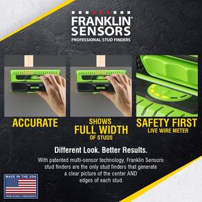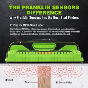 Com um localizador Franklin Sensors Stud, você tem o localizador de pinos mais rápido, fácil e preciso do mercado. Para operar o ProSensor M210, basta pressionar e segurar o botão e colocá-lo na parede e pronto. Não há procedimento de calibração. Você pode encontrar brincos instantaneamente. Depois de colocá-lo na parede, os LEDs mostram exatamente onde o pino está. O M210 tem uma tela LED de precisão aprimorada. com 21 LEDs bem espaçados, o M210 identifica os pinos com mais precisão. Quando você move a unidade para frente e para trás, o ProSensor M210 continua a rastrear a localização do pino, o que facilita encontrar instantaneamente o centro e as bordas. Os localizadores de pinos Franklin Sensors são os detectores de pinos mais precisos porque têm mais sensores. Outros localizadores de pinos normalmente têm apenas 1 ou 2 sensores. O ProSensor M210 tem 13, o que o torna o melhor localizador de pinos do mercado. Com a tecnologia patenteada da Franklin Sensors, você pode encontrar posições de pinos com precisão imbatível. A tela extra ampla no M210 permite que você veja a largura total de objetos, como pinos duplos e vários pinos. O M210 também identifica fios ativos para segurança extra. Os recursos adicionais incluem um nível de bolha embutido e um prático suporte de lápis para torná-lo o scanner de parede perfeito para pendurar e nivelar imagens para instalar armários e TVs de tela plana. Depois de experimentar o ProSensor M210, os localizadores de pinos Franklin Sensors rapidamente se tornarão seus favoritos. - Preciso: mais sensores = mais precisão. Os localizadores de pinos convencionais têm 1 ou 2 sensores. O ProSensor M210 tem 13, o que o torna a ferramenta de detecção de pino mais precisa do mercado. O ProSensor M210 tem uma profundidade máxima de detecção de 3,8 cm. Os LEDs de precisão rastreiam a localização dos pinos enquanto exibem o centro e as bordas simultaneamente. - Fácil: um modo encontra tudo! O ProSensor M210 ajusta-se a uma variedade de profundidades, materiais e texturas. Não é necessária calibração. Pressione e segure o botão para começar a digitalizar. Ao contrário de outros sensores de pino que dão leituras falsas, o ProSensor M210 permite que você comece a digitalizar em qualquer lugar, mesmo sobre um pino. - Exibe pinos completos: o ProSensor M210 exibe o centro e as bordas dos pinos simultaneamente, mostrando pinos únicos, pinos duplos e configurações irregulares que outros localizadores de pinos não conseguem detectar. Funciona com drywall/sheetrock e muito mais! - Durável: Classificação nº 1 por consumidores e profissionais, o localizador de pinos ProSensor M210 é preciso e durável. - Características extras: Medidor de fio ativo. Requer duas pilhas AA (não incluídas).