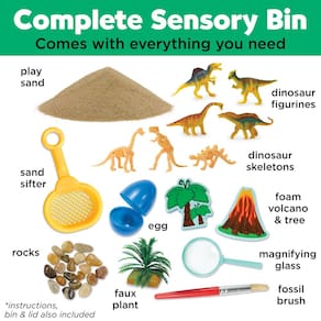 — CAIXA SENSORIAL DE DINOSSAUROS: explore os tempos pré-históricos com o melhor brinquedo sensorial simulado para cavar dinossauros. Esta atividade exclusiva para crianças pequenas apresenta uma caixa sensorial cheia de 3 libras de areia para brincar, brinquedos de dinossauro para crianças de 3 a 4 anos ou mais, pedras, peneira de areia, fósseis, brinquedos de vulcão e muito mais! Explore sua caixa sensorial; conte e nomeie as cores de cada item, invente uma história sobre sua escavação e muito mais!