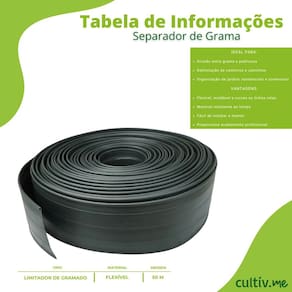 Características * Flexível, moldável a curvas ou linhas retas * Material resistente ao tempo * Fácil de instalar e manter * Proporciona acabamento profissional * Comprimento: 50 metros.