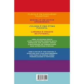 Neste livro interativo, os leitores vão explorar as possibilidades de misturar personagens enquanto refletem sobre a importância das diferenças e da liberdade de poder ser quem se é e como nos sentimos ser. Os personagens desta história têm habilidades e interesses diversos. Enquanto um deles ama matemática, outra prefere cantar. Tem aquele que gosta mesmo é de dançar, e aquela que adora jogar uma bola… E por aí vai! Ao contrário do que muita gente poderia imaginar, são justamente essas diferenças que os aproximam e fortalecem a união dessa turma. Afinal, eles admiram os talentos uns dos outros e a pluralidade do grupo. Mas o que acontece quando seus interesses, gostos e preferências se misturam? Que rostos e personalidades surgem nas páginas do livro? Com um projeto gráfico especial, este livro convida o leitor para brincar e criar novas personas. Os autores de Ser o que se é homenageiam as diferenças, a diversidade e a alegria de poder ser quem se é e trazer um mundo inteiro e colorido dentro de si. Indicado para leitores a partir de 6 anos.
