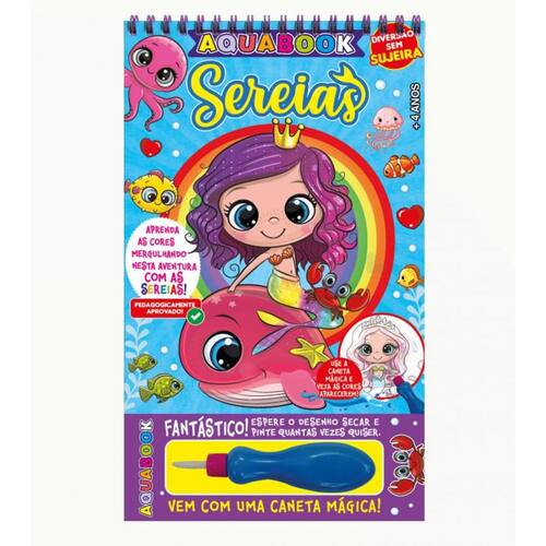 As sereias mais lindas aguardam pelo seu colorido para deixar o fundo do mar ainda mais lindo e divertido com este aquabook. Basta colocar água no pincel mágico para ver a mágia acontecer.
