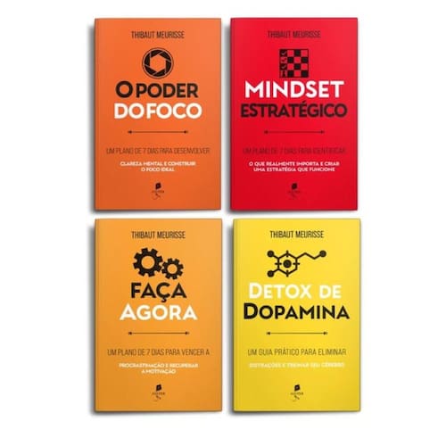 O Kit Série Produtividade oferece quatro livros essenciais para melhorar o foco, combater a procrastinação e aumentar a eficiência no dia a dia:1. Detox de Dopamina: Recupere o foco em até 48 horas aprendendo a eliminar distrações através de uma desintoxicação da dopamina.2. Faça Agora: Supere a procrastinação em uma semana com um plano prático e exercícios diários para avançar em direção aos seus objetivos.3. O Poder do Foco: Melhore sua concentração em sete dias, eliminando distrações e aprendendo a focar no que realmente importa.4. Mindset Estratégico: Desenvolva uma mentalidade estratégica para aumentar sua produtividade, respondendo a perguntas chave e elaborando planos eficazes.BENEFÍCIOS DO KIT SÉRIE PRODUTIVIDADE: • Recupere seu foco e elimine distrações;• Supere a procrastinação com um plano prático;• Desenvolva uma concentração poderosa em apenas 7 dias;• Adote uma mentalidade estratégica para maximizar sua produtividade;• O Kit proporciona ferramentas comprovadas para transformar sua vida, ajudando você a alcançar seus objetivos de forma eficiente e se tornar a melhor versão de si mesmo. Marca: AUSTER EDITORA