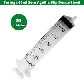 Seringa Descartável Lock Bico Cateter Sonda 60 Ml S/Ag 20 Unidades Sr Desenvolvidas para a aspiração e injeção de grandes volumes líquidos e soluções, alimentação enteral, durante procedimentos médicos