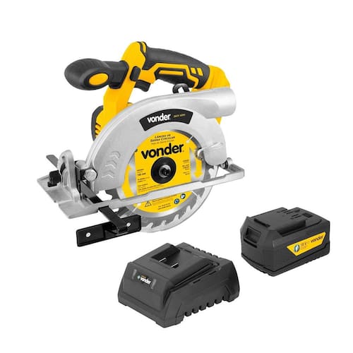 Especificações: Marca: Vonder Modelo: ISCV1831 Capacidade de corte: 45°:40 mm / 90º:55,0 mm Capacidade da bateria: 4Ah Diâmetro do disco: 6.1/2" - 165 mm Faixa de medição de inclinações: Base até 50º Tensão Carregador: Bivolt Tensão Bateria: 18V Rotações por minuto: 4.200 rpm Peso: 2.60 Kg