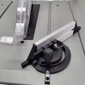 Encosto transversal para regulagem de corte reto ou em ângulo de até 45°.