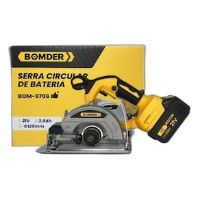 Serra Circular Elétrica Com 2 Baterias 21v - BOMDER Pode ser Utilizado no corte de azulejos, chapas, plástico, madeira e etc. A Serra Circular, conta com 3 velocidades diferentes e ângulo de trabalho ajustável até 45, além de punho auxiliar robusto, que proporciona maior estabilidade durante o corte. Informações Técnicas: Motor sem escovas Bateria de lítio grau industrial Tela metálica para pó Rolamentos de precisão dupla Velocidade regulável: 3 velocidades Ângulo ajustável de 0 a 45 Diâmetro do disco: 125mm Profundidade ajustável Itens Inclusos: 1x Serra Circular Portátil 21V 3x Lâminas de corte 1x Chave para Porca 1x Chave de Biela 1x Carregador 2x Bateria Marca: Não Informado Ean: 7797794999230
