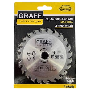 Serra Circular com Pastilha de Metal Duro para Madeira 4.3/8''x24d 579,0001 - Graff Vantage, para compensados e aglomerados, com pastilhas de metal duro para corte em madeira. Marca: Não Informado