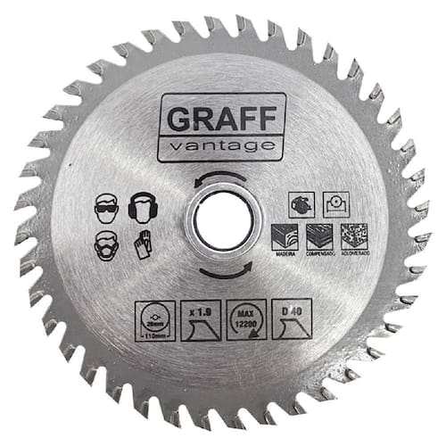 Serra Circular com Pastilha de Metal Duro para Madeira 4.3/8''x40d 579,0002 - Graff Vantage, para compensados e aglomerados, com pastilhas de metal duro para corte em madeira. Marca: Não Informado Ean: 7908745605524