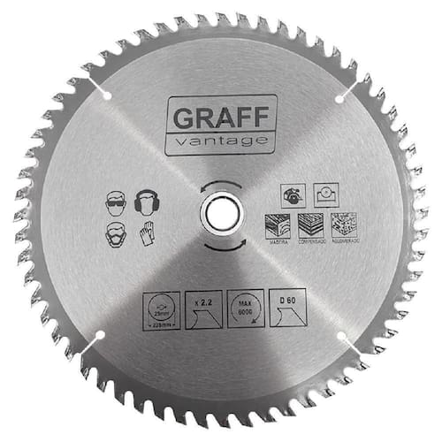 Serra Circular com Pastilha de Metal Duro para Madeira 9.1/4''x60d 579,0008 - Graff Vantage, para compensados e aglomerados, com pastilhas de metal duro para corte em madeira. Marca: Graff