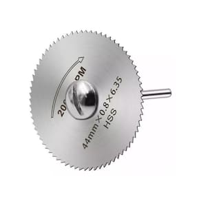 Haterial: HSS Rotação Máxima: 20.000 rpm nunca ultrapassar Para sua Segurança: Utilize sempre óculos e luvas de proteção Conteúdo da embalagem: 5 discos + 1 mandril