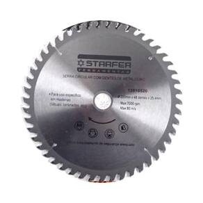 CARACTERÍSTICAS TÉCNICAS: Material: Aço carbono e metal duro Medidas: 200mm Número de dentes wídia : 48 Diâmetro do furo: 25,4mm Limite máximo: 7000 rpm - 80 m/s Espessura do disco: 2.2mm Espessura de corte: 3.2mm Marca: Starfer Ref.: 12810520 Ean: 7891638034276