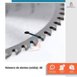 O Disco de Serra Circular é ideal para ser utilizado juntamente com serras circulares nos trabalhos de corte em madeiras, chapas laminadas, aglomerados, compensados, MDF, entre outros. Indicado para cortar madeiras finas que necessitem de melhor acabamento e precisão. CARACTERÍSTICAS TÉCNICAS:Material: Aço carbono e metal duroMedidas: 350mm - 14Número de dentes wídia : 48Diâmetro do furo: 25,4mmLimite máximo: 4400 rpm - 80 m/sEspessura do disco: 2,5mmEspessura de corte: 3,8 mmMarca: StarferRef.: 12810822