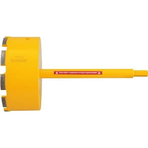 Conteúdo da Embalagem: 1 Serra copo diamantada com haste e pino guia. Possui corpo reforçado em aço e segmento diamantado prensado a quente, proporcionando maior durabilidade. Facilita a realização de furos de grandes diâmetros em tempo reduzido. Indicada para cortar telhas, tijolos, cerâmicas, azulejos, granitos entre outros. Quando utilizada com o pino guia, deve-se fazer um furo com broca de vídea antes. Nunca utilizar o equipamento na função IMPACTO/MARTELETE. Não indicada para porcelanato. Diâmetro:120,00 mm Altura útil aproximada:58,00 mm Material da serra copo:Corpo metálico com dentes diamantados (Aço carbono C45). Comprimento total da haste:170,00 mm Diâmetro do encaixe da haste:9,50 mm Altura da camada de diamante:6,00 mm