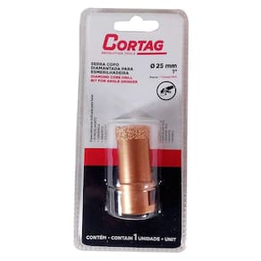 Serra copo diamantada cortag é um equipamento especialmente indicado para furar a seco ou úmido, como: paredes de alvenaria, blocos de cimento, granito, mármore, pisos de revestimento cerâmicos, pedras decorativas, telhas, tijolos e materiais similares.Código: 61872 25 mm - 1Rosca: m14Profundidade do corte: 60 mm