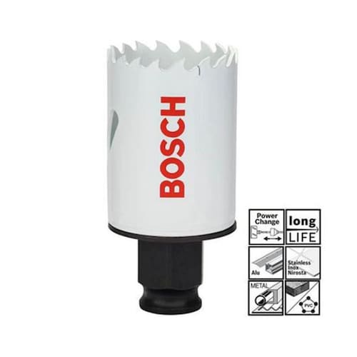 A Serra Copo Progressor for Wood and Metal vem com o exclusivo adaptador power-change da Bosch, que é o sistema de troca mais rápida do mercado. Ela permite travar e destravar a serra copo e as brocas piloto com apenas um clique.